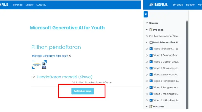 Tutorial Daftar Pelatihan kitakerja.id : https://youtu.be/v5iM46Ruzxg